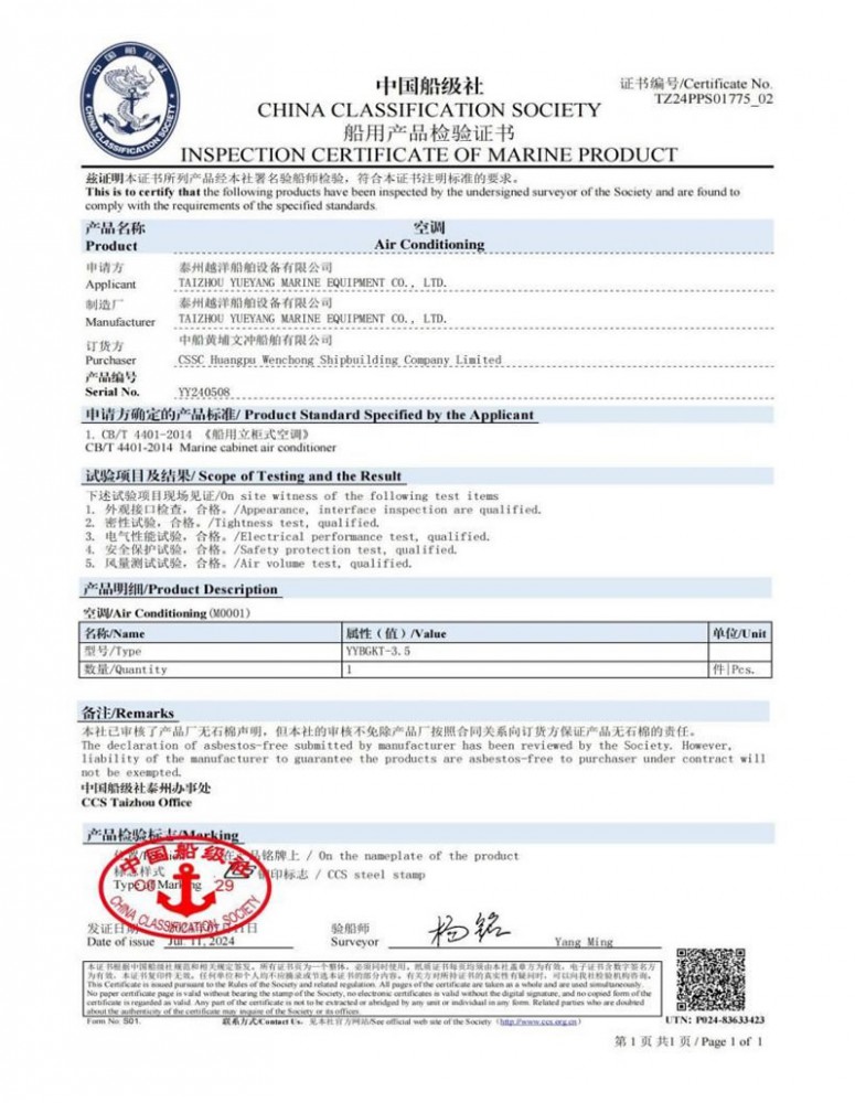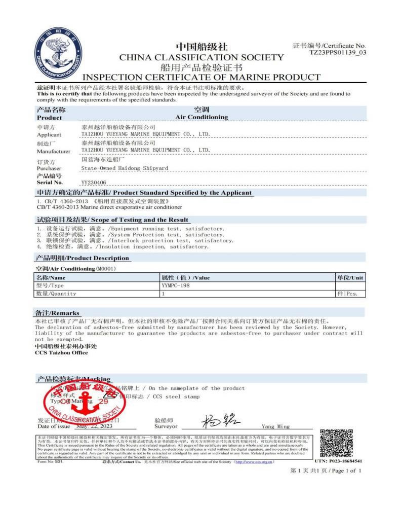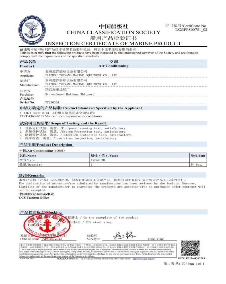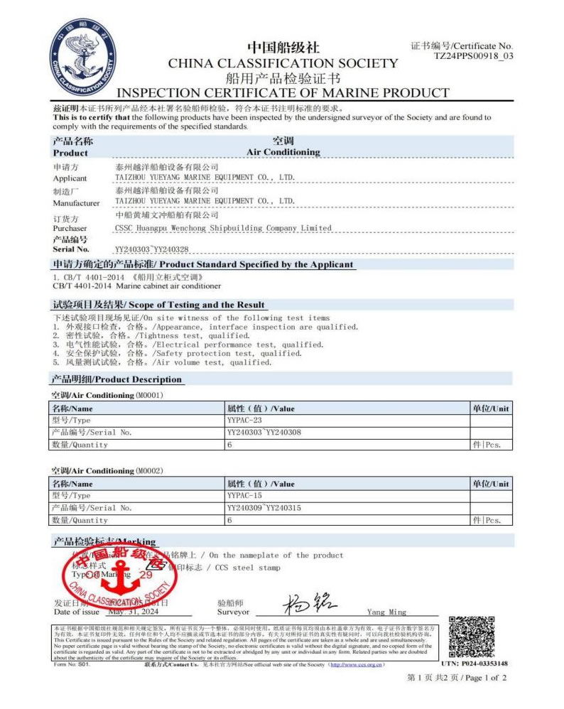 泰州越洋船舶設(shè)備有限公司多年專業(yè)從事艦船用空調(diào)、冷藏、冷凍設(shè)備、冷庫系統(tǒng),通風安裝系統(tǒng)(空調(diào)通風,機艙通風,自然通風)等。本公司地處美麗的曲霞鎮(zhèn)工業(yè)園區(qū),固定資產(chǎn)1200萬人民幣,占地面積1.5萬平方米左右,公司產(chǎn)品廣泛用于海軍驅(qū)逐艦護衛(wèi)艦,補給艦,海警,醫(yī)療船,科考船等,如:“東方紅2“,“海大號”,“向陽紅06”,“向陽紅09”,“向陽紅03”,“大洋1號”,“東方紅3”,“向陽紅18”,“向陽紅52”,地質(zhì)級科考船“業(yè)冶錚”號海洋平臺。